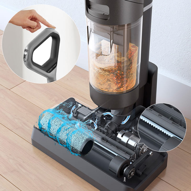 Благодаря роликовой щетке, поддерживающей скорость вращения до 540 об/мин, H11 Core обеспечивает высокую эффективность уборки, справляясь даже со стойкими загрязнениями. Вы можете легко двигать щетку вперед и назад и убираться без лишних усилий, не уставая.