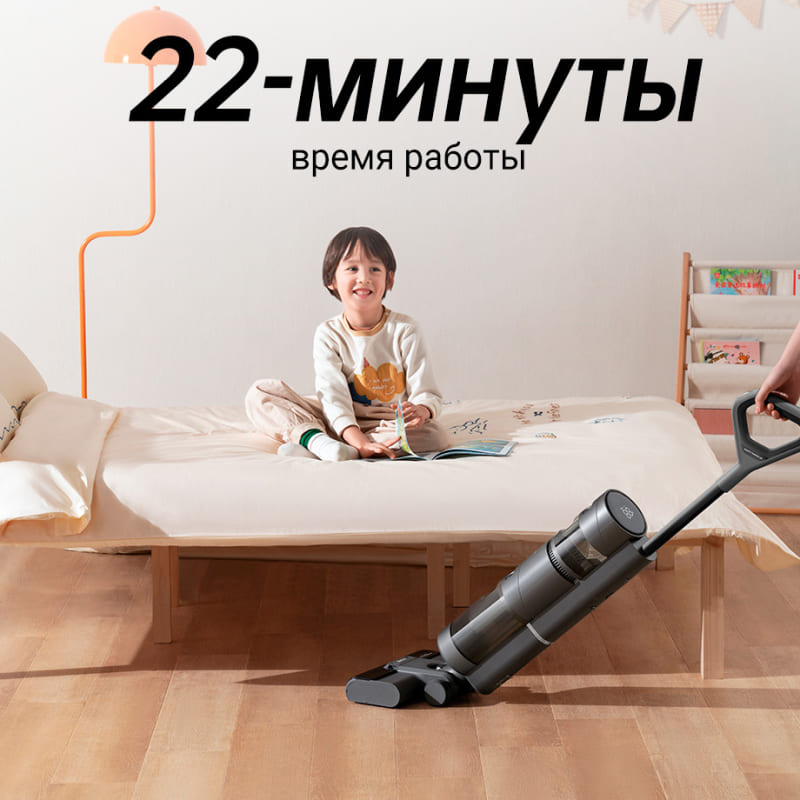В сочетании с аккумулятором емкостью 6 x 2500 мАч пылесос позволяет эффективно выполнять уборку в течение 22 минут*, поддерживая чистоту и порядок в доме.