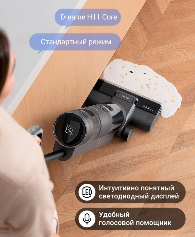 Понятные подсказки и точные настройки обеспечивают высокую эффективность уборки. Светодиодный дисплей с интуитивно понятным интерфейсом помогает быстро узнать статус уборки. Интеллектуальные голосовые подсказки позволяют получить четкие и точные инструкции.