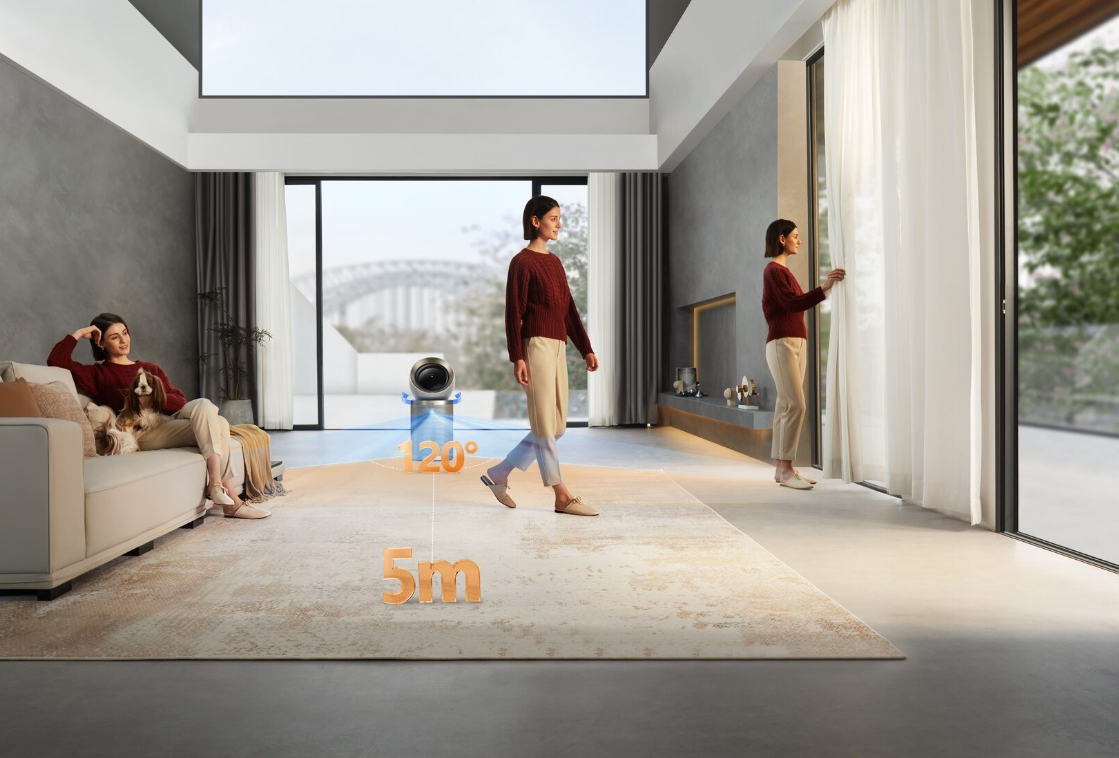 При наличии одного человека в помещении воздушный поток будет следовать за ним. В присутствии нескольких людей воздушный поток будет попеременно менять направление, обеспечивая равномерный охват.
