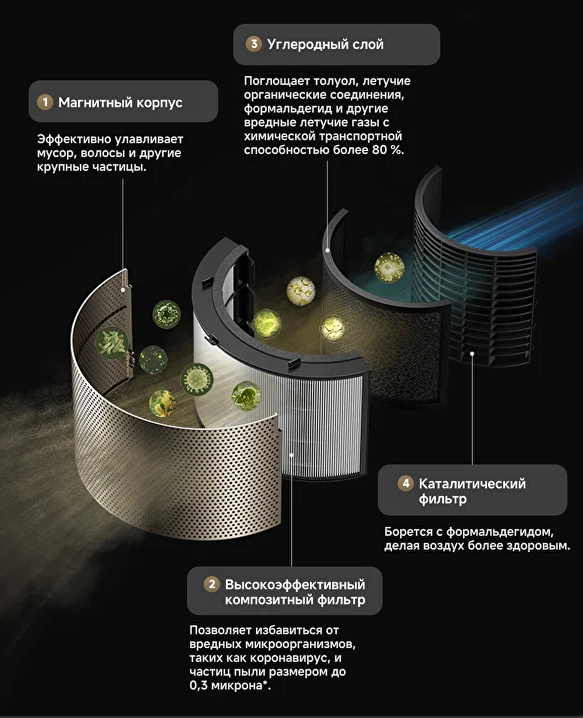Наслаждайтесь свежим воздухом благодаря сверхбыстрому восходящему потоку. Производительность очистителя воздуха достигает 300 м3/ч, что позволяет сделать воздух чистым во всем жилом пространстве.
