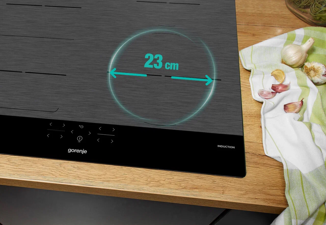 Новая компоновка конфорок варочной панели упрощает приготовление пищи. Конфорка диаметром 23 сантиметра расположена спереди и идеально подходит для приготовления в большой посуде, а малая 14,5-сантиметровая конфорка безопасно размещена сзади. Благодаря такому расположению конфорок дно посуды прогревается по всей площади, и холодных областей не остается, гарантируя равномерное приготовление. Все конфорки оптимально распределены на варочной поверхности, чтобы вы могли уверенно готовить. Наслаждайтесь вкусными блюдами каждый раз благодаря высокой функциональности и продуманному расположению конфорок варочной панели.